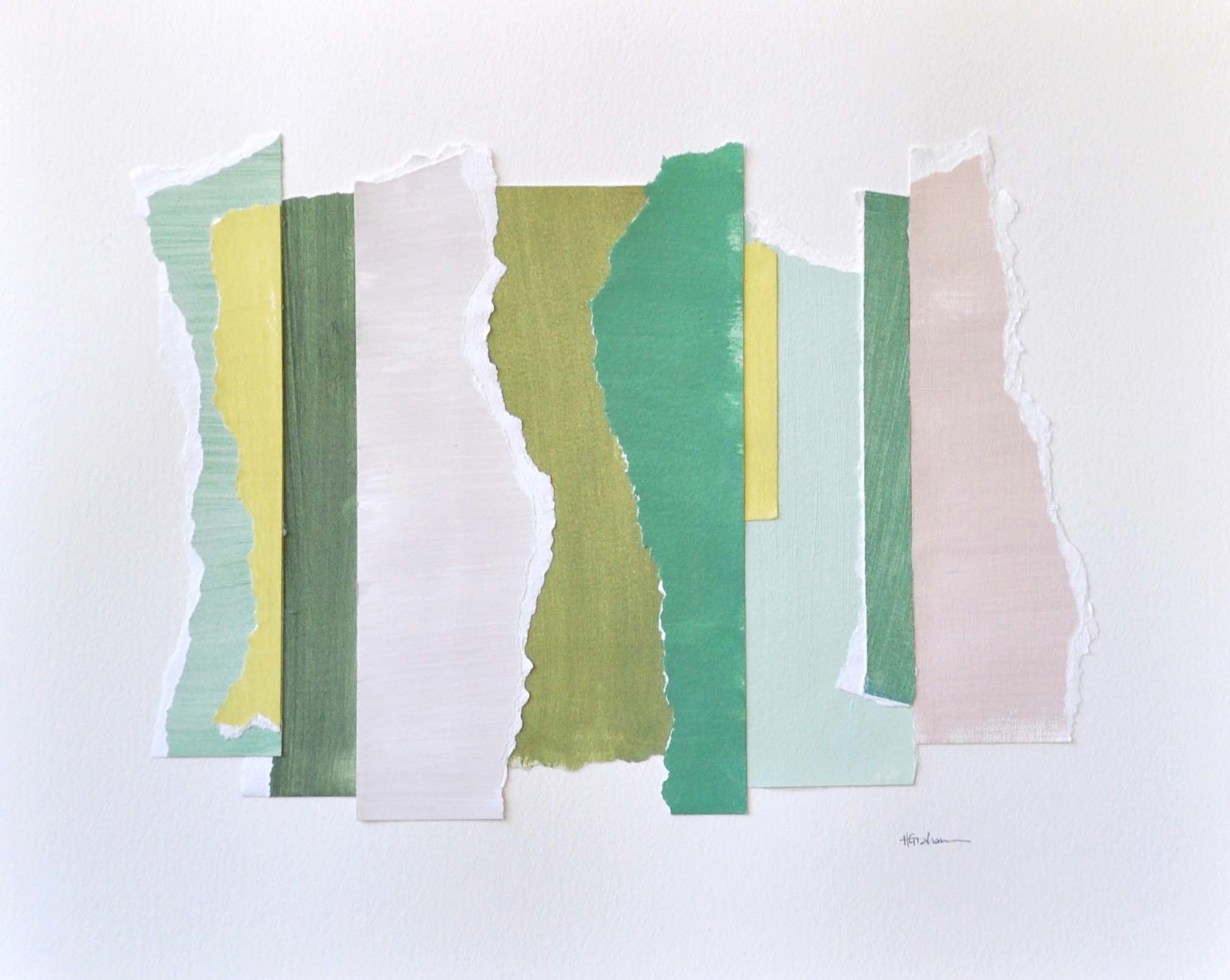 I have been having a great time making my torn paper collages recently. They are a great study in color and texture. Painted papers are currently covering my studio floor — it’s an organized chaos! This series is all about creating a visual music based on memories. Each piece creates a rhythm of its own through the interactions of color and space.